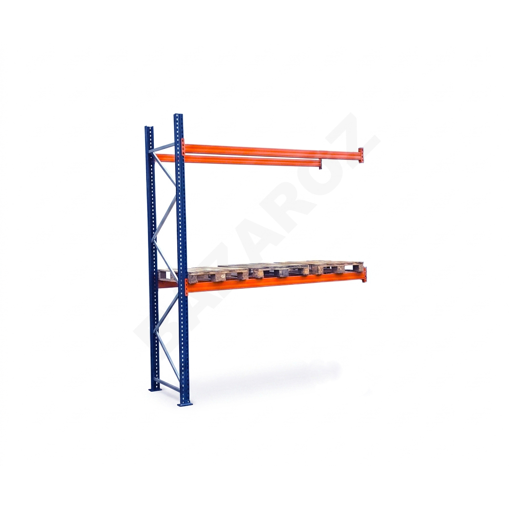 Paletové regály Mecalux dvě patra – použité, velmi dobrý stav (foto původní). Přídavné Pole